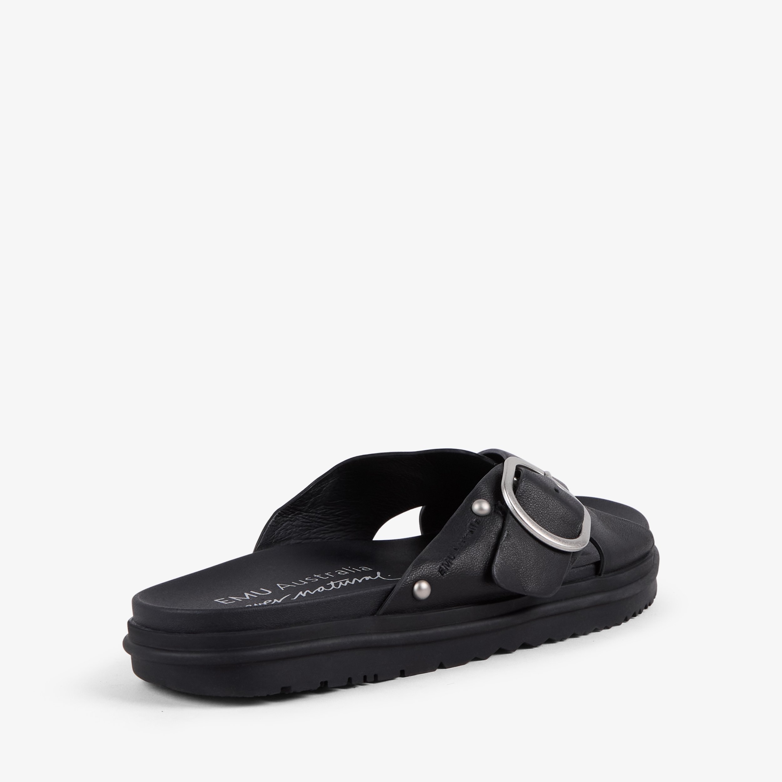 A sandal that makes every step feel easy. Crafted from supple leather with a matching leather lining, it features a crossover strap design with a side buckle for subtle detail. The backing-free, slide-on style keeps things simple, while the soft footbed and durable sole ensure comfort wherever your day takes you. Understated and versatile, it’s a sandal you’ll reach for again and again.